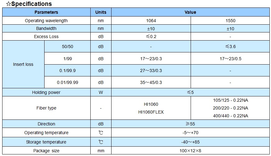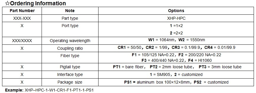 XHP high power fiber coupler features low insert loss, high holding power, stable and reliable. It can be integrated into fiber laser, fiber amplifier and R&D test equipment.