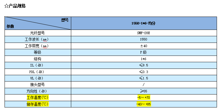 讯鸿(XHP)生产的1×6特殊光纤耦合器(XHP-FBT)插入损耗低,回损高,稳定可靠。适用于光纤通讯网络、光纤传感系统和光纤测试设备等。