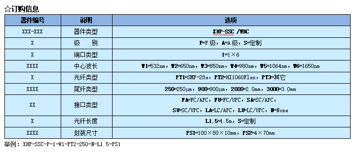 讯鸿(XHP)生产的1×6特殊光纤耦合器(XHP-FBT)插入损耗低,回损高,稳定可靠。适用于光纤通讯网络、光纤传感系统和光纤测试设备等。